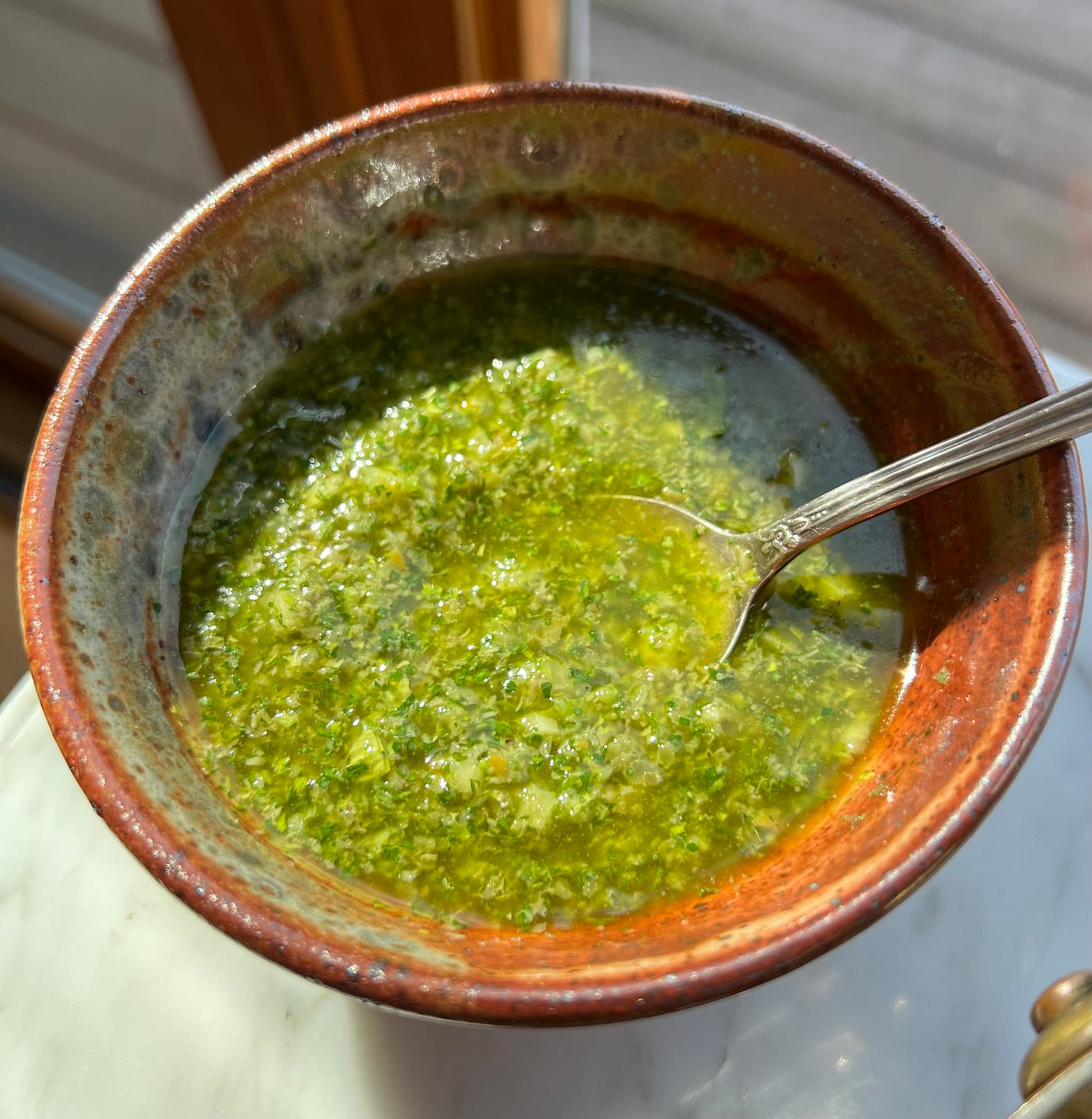 A salsa verde is just a super-charged way to use green herbs and all sorts of green leaves for nice, sort- of-chunky, sauces to spike dishes at the table. Salsa verdes are often fairly pungent & add contrast in flavor and texture to foods at the table. Consider adding some finely chopped hot chile, a bit of anchovy, or some preserved lemon if you’d like to amp things up. Featuring the crunch of celery is somewhat different—I’ve seen versions in Moroccan cooking, but it’s not common.